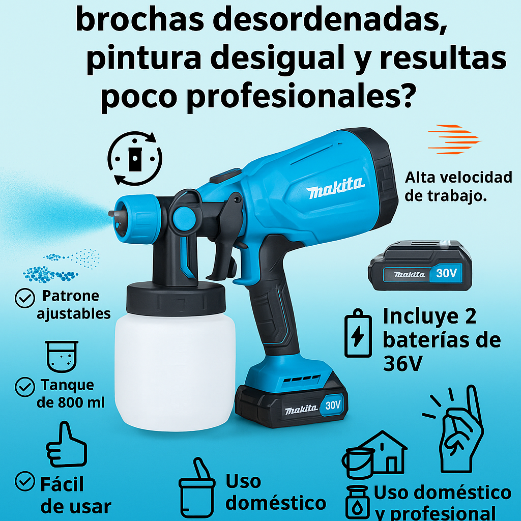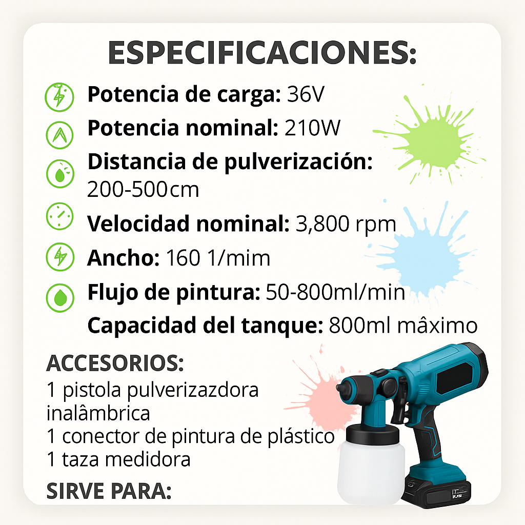 Funciona con esmalte, sellador, barniz, látex, poliuretano y pintura para autos.